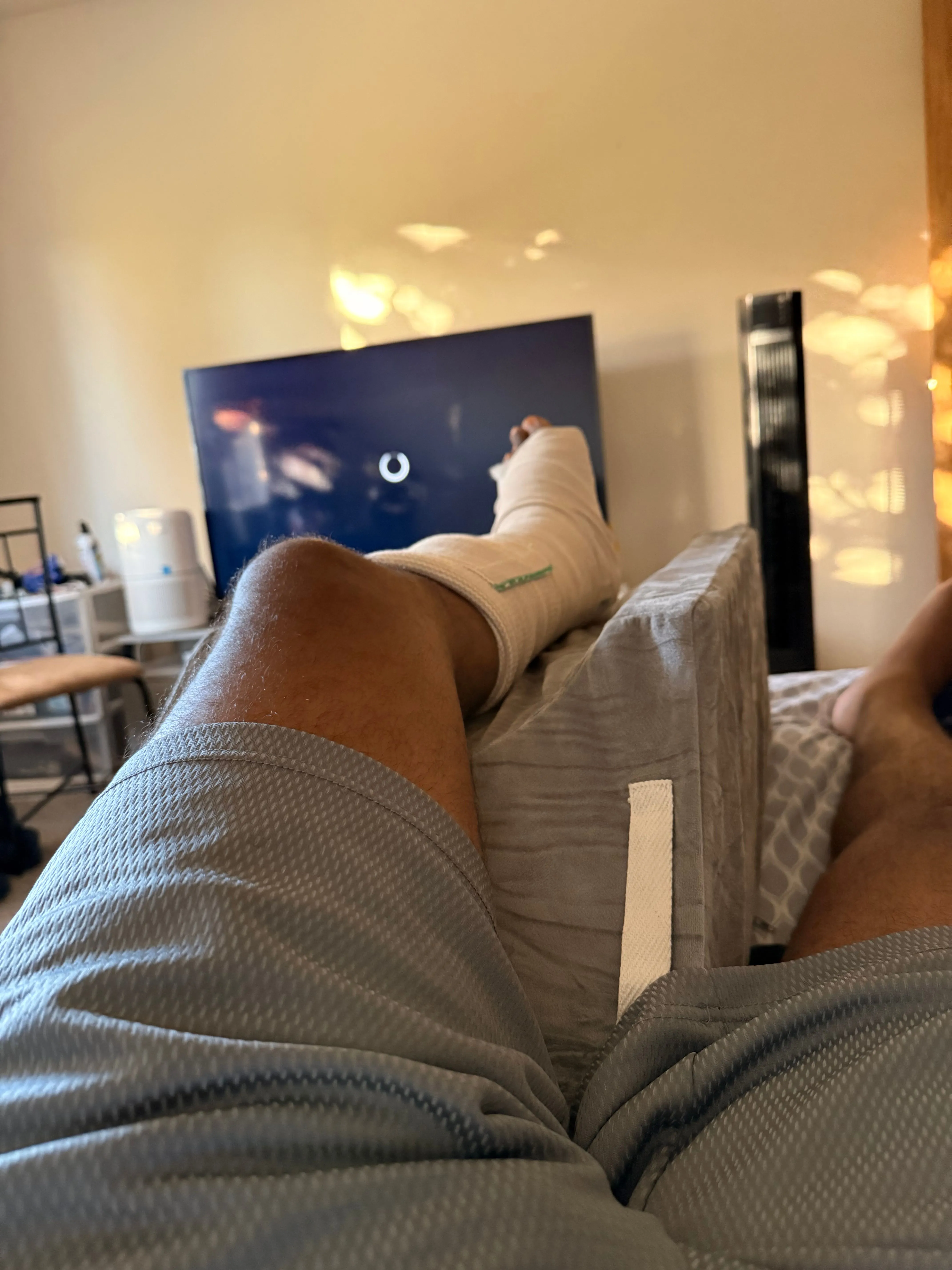 Sleeping was another adjustment. Keeping my leg elevated meant sleeping on my back, and I am not a natural back sleeper. I tried to make it work with pillows and small adjustments, but comfort was hard to find. So the days blended into a routine of sleep, shows, short trips around the apartment, and long stretches of waiting. My brain was still foggy from anesthesia and pain meds, and time moved in a weird way. Even when I was not doing much, I felt tired.
